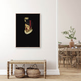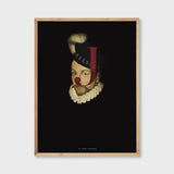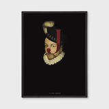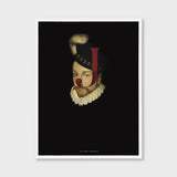 Royal Flush is a beautiful Renaissance inspired artwork collection created by Paul Clark. The Jack is a perfect balance of modern graphic and old image collage. The red maroon letter J artwork with the portrait emerging from the black background gives the artwork a majestic yet modern feel. This unique poster would suit any hallway or living room art wall as a unique portrait combination of image and typography.