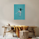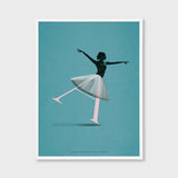 Aurelia - Letter A art print is a collage of letterform and silhouette photography of a ballerina. Teal blue and pale pink. This is the perfect addition to a picture wall or a present for someone who loves ballet or is a dancer. Aurelia was created by Tim Kliendienst and is a part of the Collection of Characters.