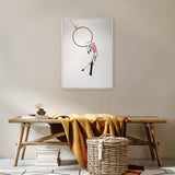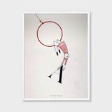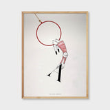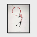 Created by Paul Clark as part of the Circus Collection. This picture shows a circus performer swinging playfully above the audience and makes us think about things as they are in our high-flying world. This illustration artwork and poster design of letter A by Paul in red and black is the perfect unique addition to a picture wall, birthday present or decorating your kid's room.