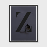The perfect addition to any plant or nature loving home. This Flora edition Z poster with its gorgeous dark dusty blue coloured background and a subtle black branch integrated into the black letter form has a sophisticated and modern feel. This typography artwork would look amazing in a kitchen, living room or bedroom. This is a classic design with a contemporary and earthy touch. An excellent birthday, anniversary or housewarming gift for the person who loves unusual flowers. Designed by Belinda Rabe.